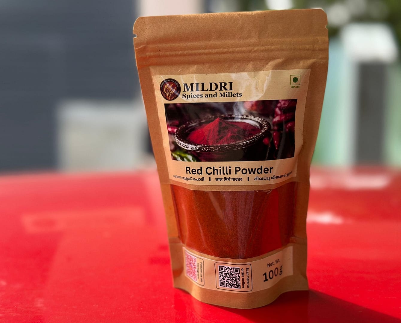 Chilli Powder available in 100g and 250g resealable pouches to ensure freshness and convenience exclusively at Mildri. This product is freshly prepared in Pathanamthitta and available for courier delivery all over Kerala and India.